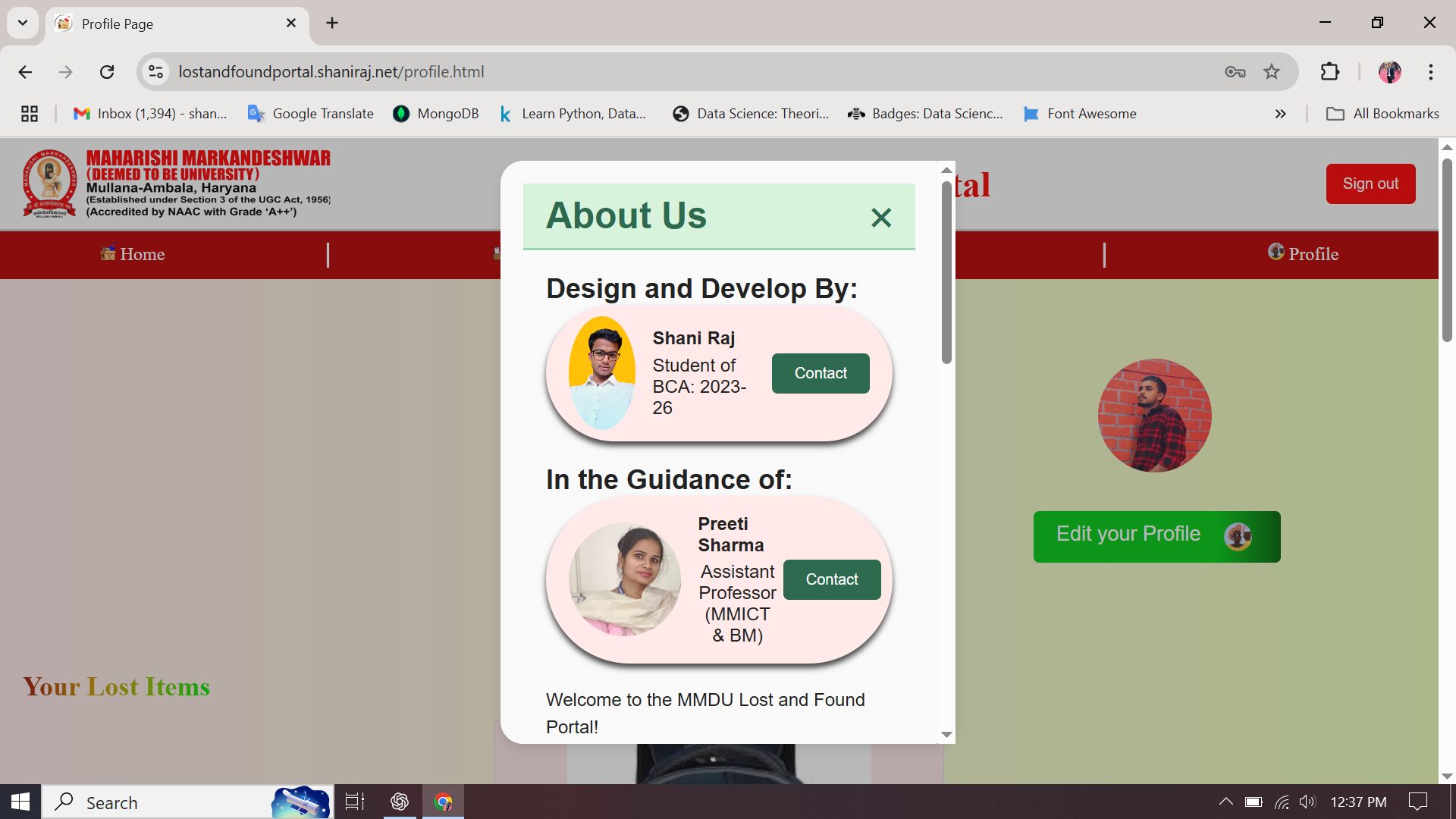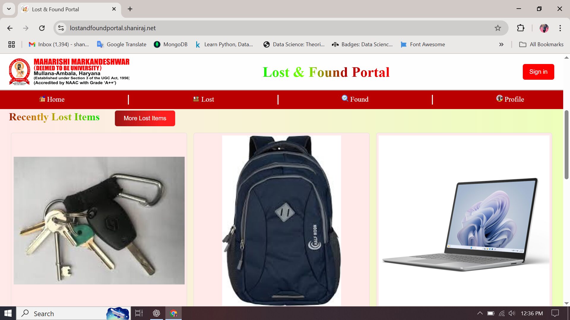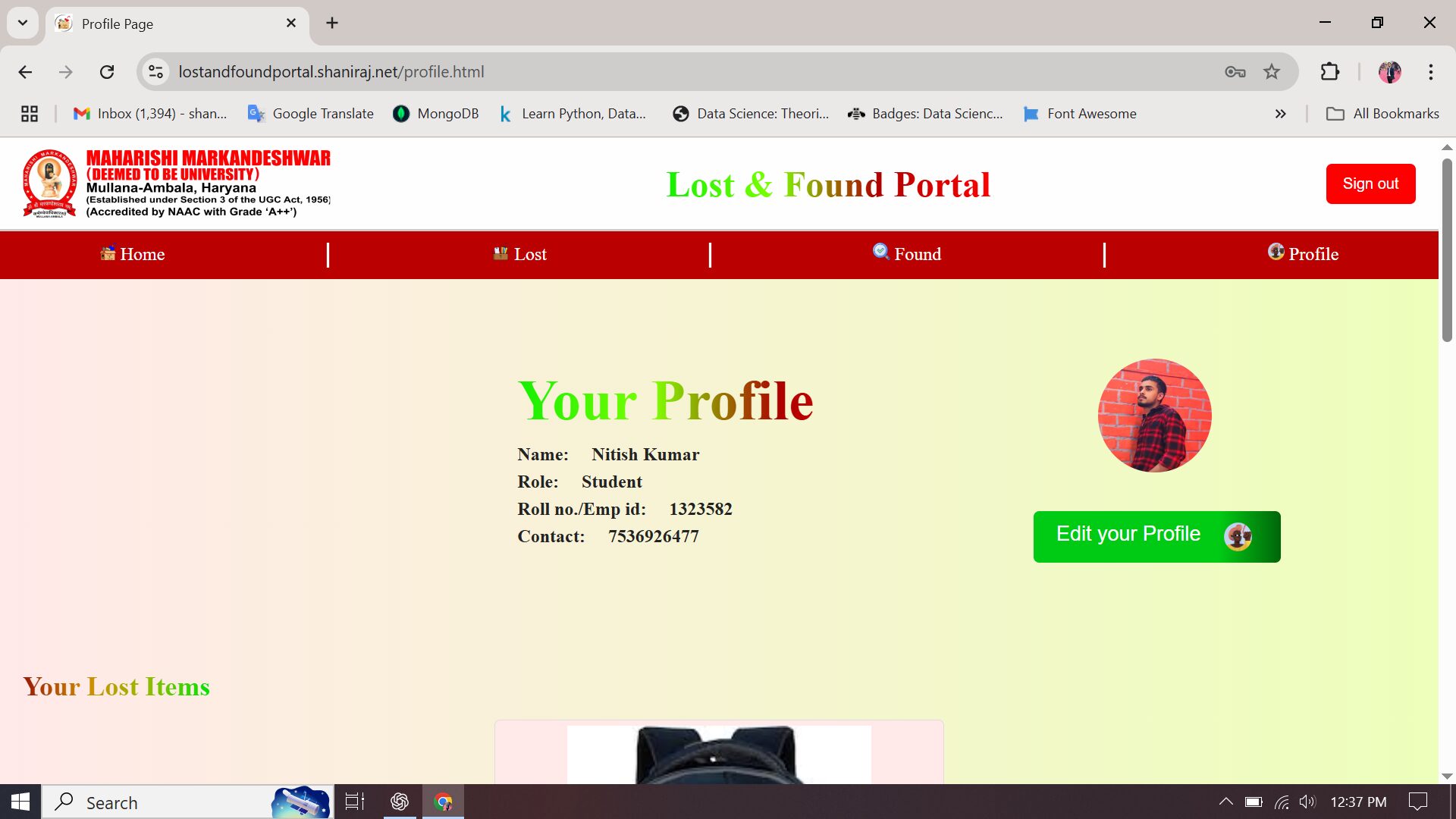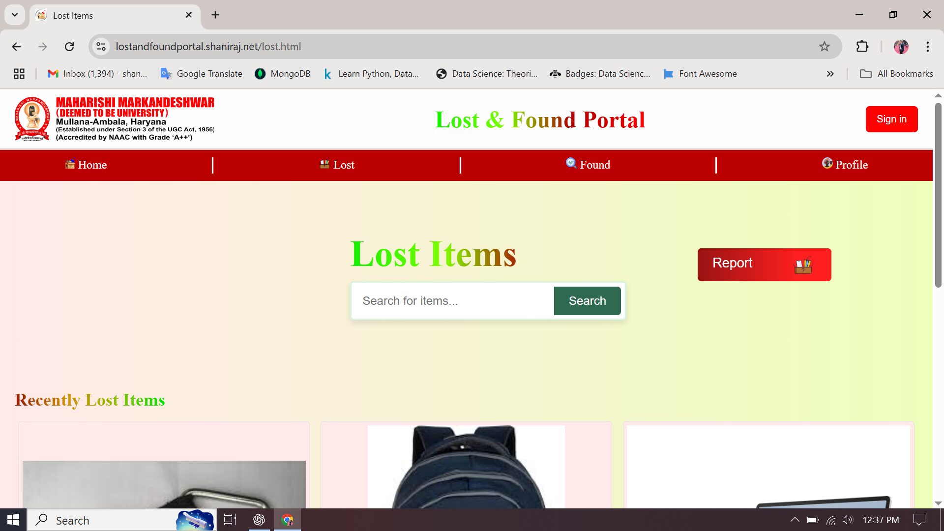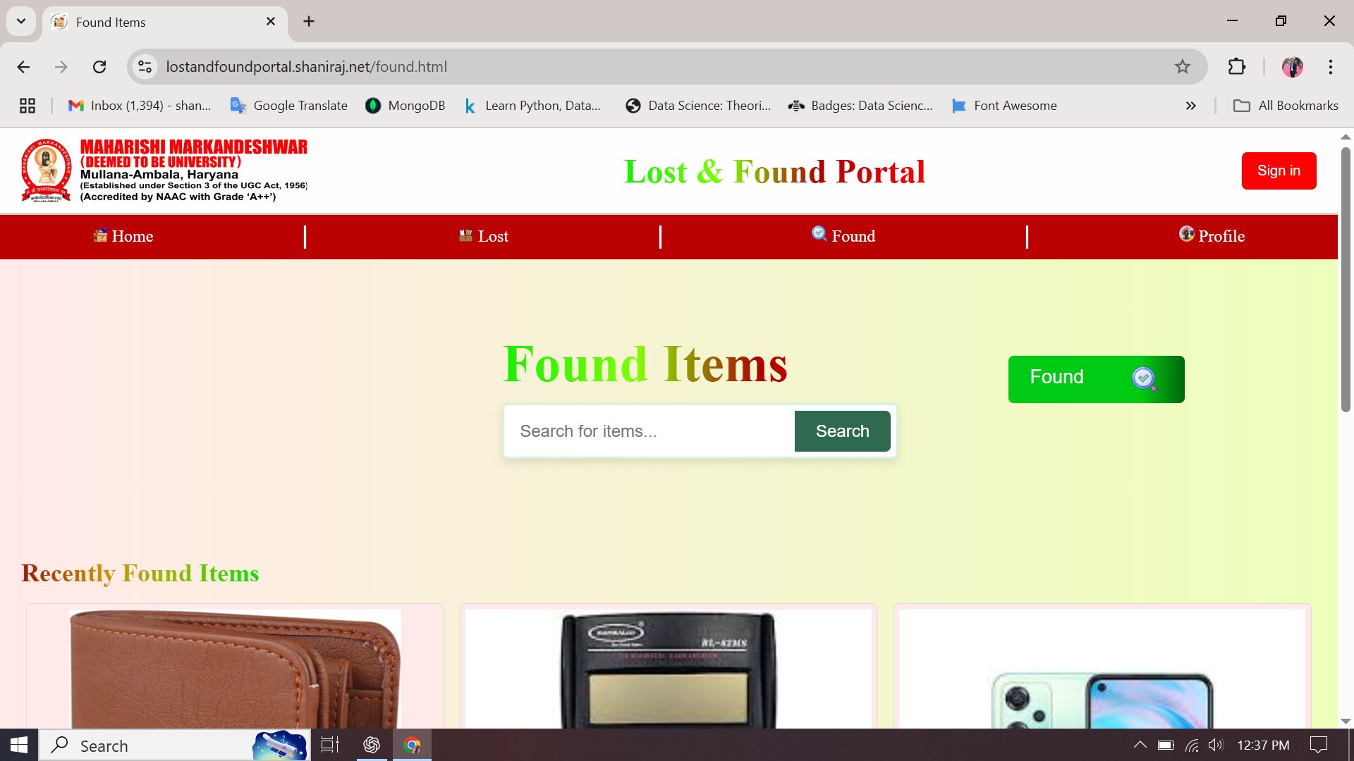 Lost and Found portal for my college as part of a practical project,During the August–December 2024 semester, I developed a fully functional . This wasn’t just an assignment—it was a solution to a real problem we face on campus almost daily.